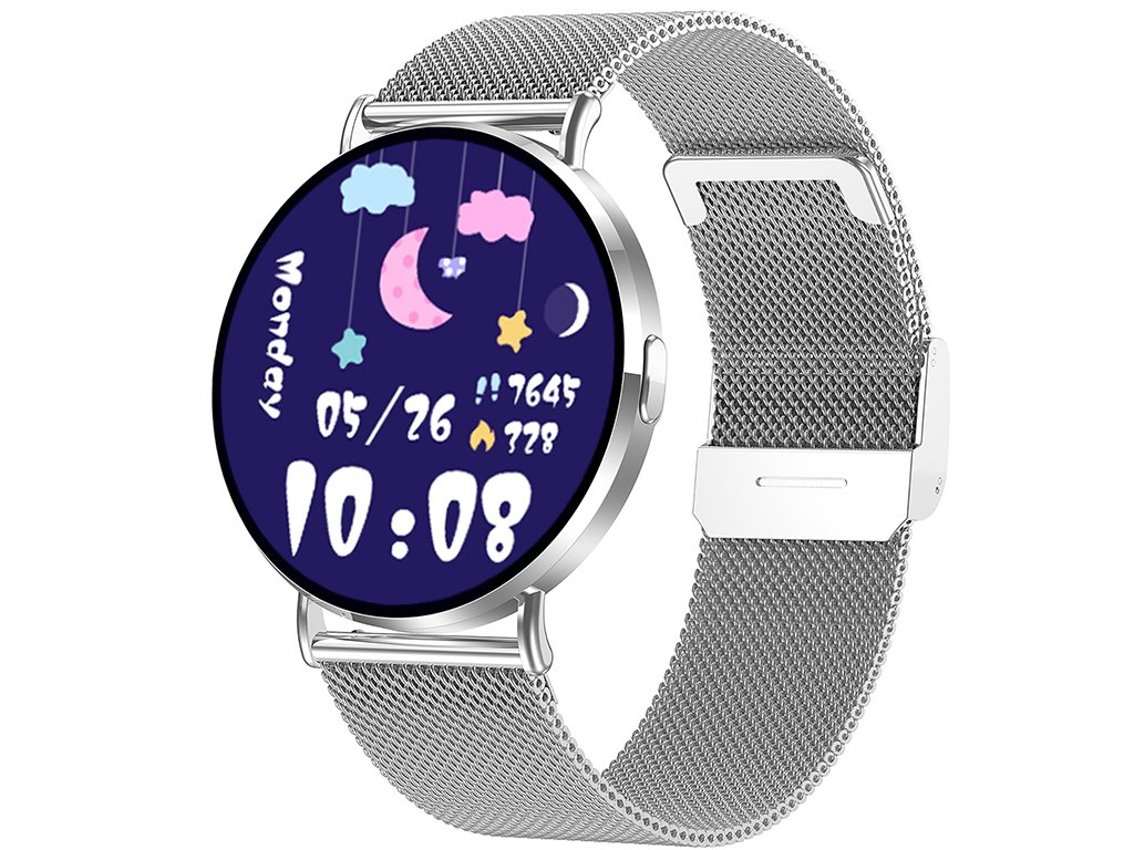 - Értesítések: Bejövő hívások, SMS-ek, alkalmazások (Facebook, Messenger, Instagram, TikTok, Emailek és sok más), női cikluskövetés, ivási emlékeztető.