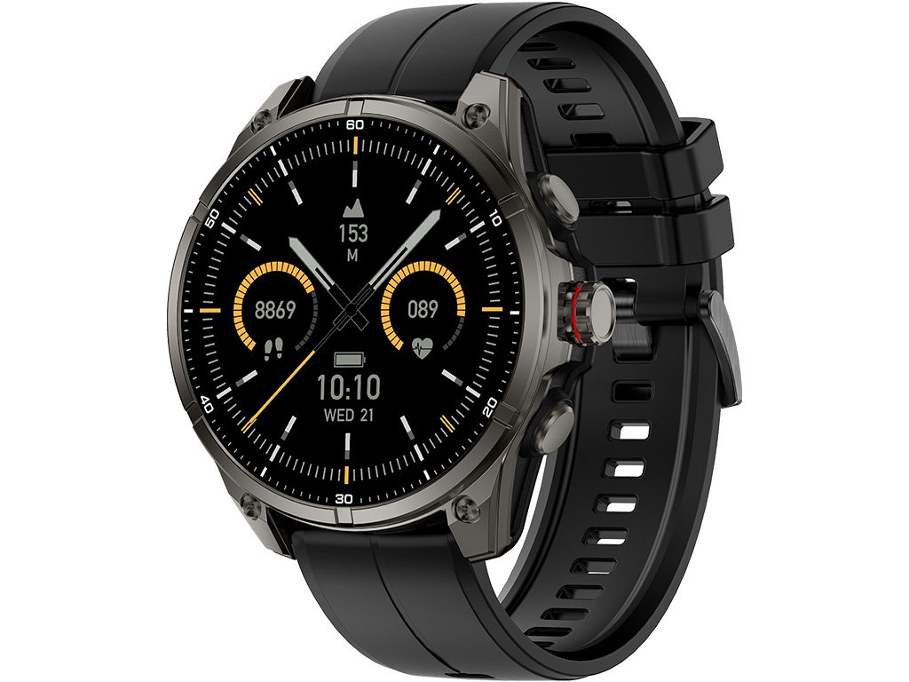 A Madvell Onyx 3 a legújabb generációs, strapabíró okosóra, amely többsávos GPS-szel rendelkezik, és akár 10 napos akkumulátor-üzemidőt biztosít. Nagy, 1,43 hüvelykes AMOLED kijelzővel van felszerelve, 466 × 466 pixeles nagy felbontással és kiváló olvashatósággal még közvetlen napfényben is. A rozsdamentes acél ház prémium megjelenést kölcsönöz az órának, miközben megbízható védelmet nyújt a legnehezebb körülmények között is. A beépített, mesterséges intelligenciával működő asszisztens elemzi a fizikai állapotodat, és személyre szabott edzési javaslatokat ad. A nagy teljesítményű LED zseblámpa négy fényerősségi fokozattal rendelkezik, akár 10 méteres hatótávolsággal. Az óra 5ATM és IP68 szabvány szerint vízálló, így tengeri úszásra is alkalmas. Természetesen kompatibilis olyan népszerű alkalmazásokkal is, mint a Strava, az Apple Egészség vagy a Google Fit.