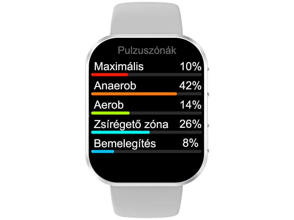 Az óra automatikusan felismeri a pulzuszónákat is, és edzés után kiértékeli, mennyire intenzíven edzettél, valamint megállapítja, hogy anaerob vagy aerob tartományban mozogtál.